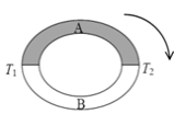контурі. A, B - два провідники, T1 та T2 - температури у місцях їх з’єднання