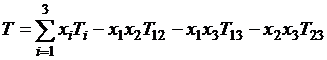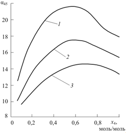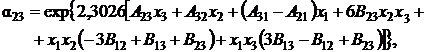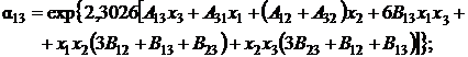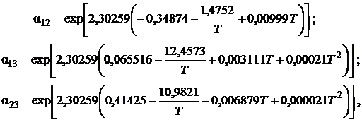 компонентов жидких бинарных систем, причем b13 = 5,316; b31 = 5,594; b12 = 5,943; b21 = 5,562; b23 = 5,946; b32 = 6,686.
