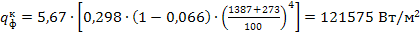 в конце печи с учетом уменьшения сечения рабочего пространства за счет
