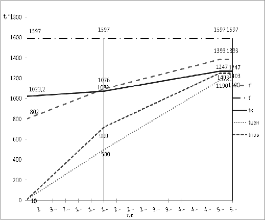 в пределах каждой камеры эффективная температура печной среды изменяется.