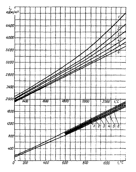 их смеси с доменным газом при Q > 12 МДж/м3: 1-6 - VL соответственно 0; 20;