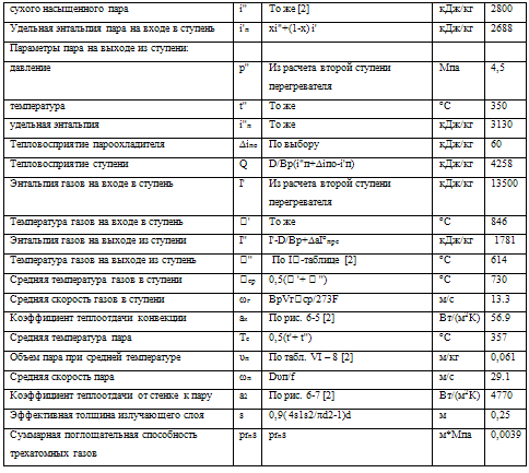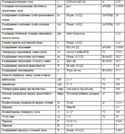 перегревателя суммарное тепловосприятие ступени согласно расчётам составляет 415,6