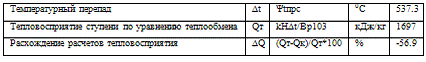 расчетных тепловосприятий согласно расчётам составляет -0.2 %, что