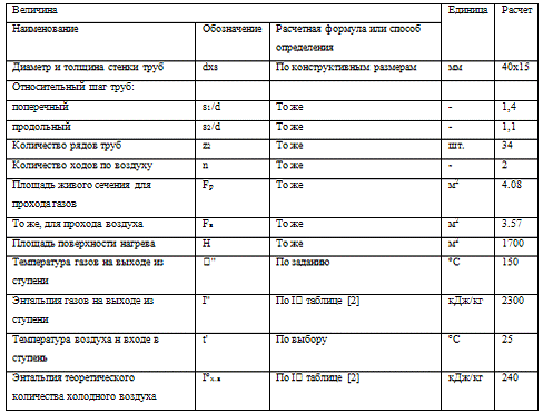 уходящих газов и горячего воздуха могут указываться в задании или выбираются в