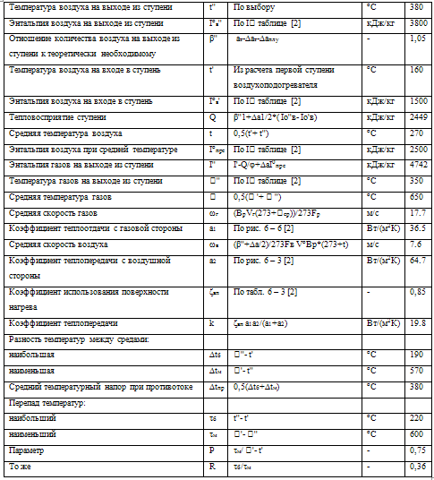 воздухоподогревателя следует, что тепловосприятие ступени по уравнению