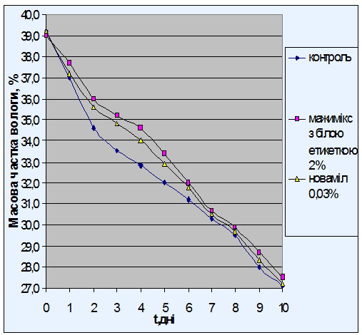 вироби. Ступінь свіжості готових виробів аналізували за зміною вологості,