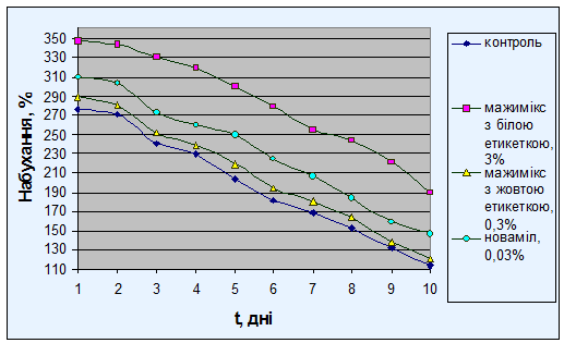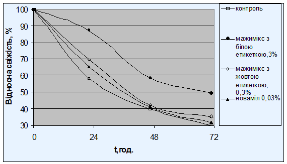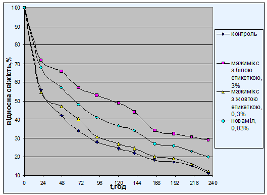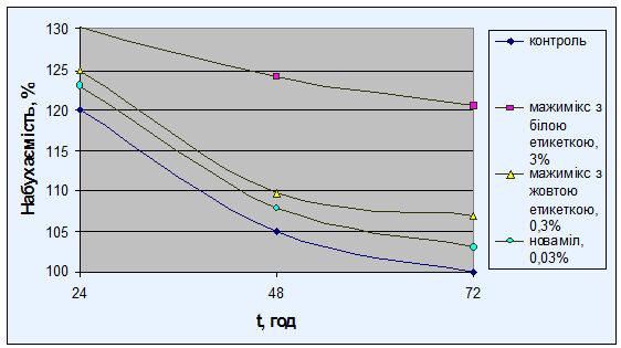 ПОРІВНЯЛЬНОЇ ОЦІНКИ ВПЛИВУ ПОЛІПШУВАЧІВ МАЖИМІКС І НОВАМІЛ НА ПРОЦЕС ЧЕРСТВІННЯ