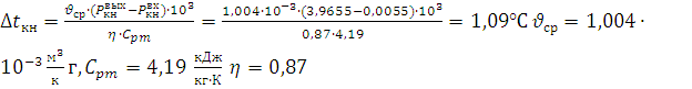 Находим нагрев воды в конденсатном насосе: