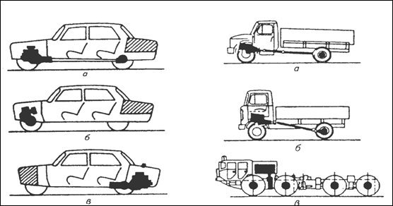 коліс навантажені більше, відповідно більше схильні до зносу; привід на передні