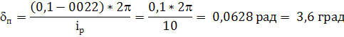 Расчет схемы селекции Угол переключения равен