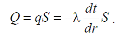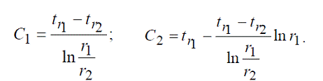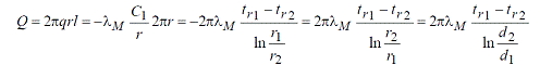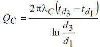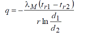 стенки и тепловой поток на 1 пог. м на 1м2 наружной и внутренней поверхности