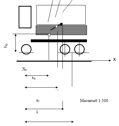 - абсцисса центра масс (ЦМА) груженого автомобиля, ХА=2,2 м;