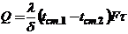 потере теплоты с 1 м2 поверхности стенки: q= (tѓ1 - tѓ2)