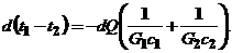 G1и G2 - массовые расходы соответственно горячего и