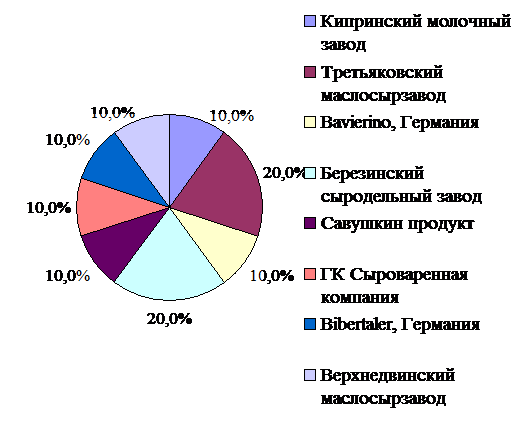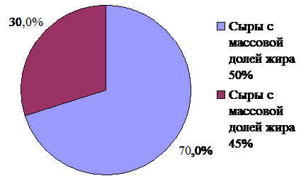 .1 Анализ структуры ассортимента твердых сычужных сыров,