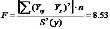 Перевірка адекватності моделі за критерієм Фішера Fтаб=19.3: