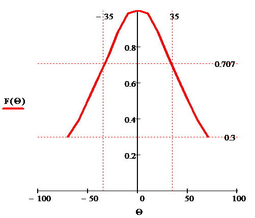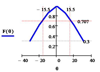 будемо вважати, що ДС опромінювача Е - площині розраховується наступним чином: