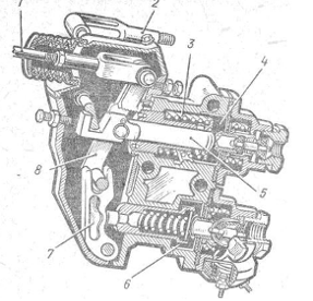 - шток; 5 - сідло випускного клапана; 6 - випускний клапан; 7 - впускний