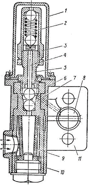 клапан; 8, 9 - сітчастий і металокерамічний фільтри; 10 - корпус; 11 -