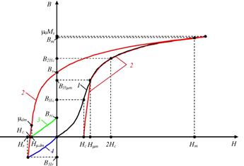 дополнительные (величины индукции Bc и B2c на начальной кривой намагничивания,