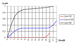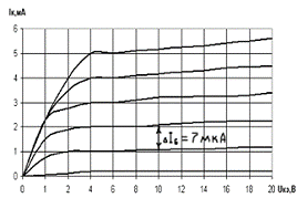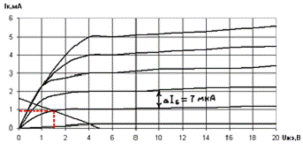 определены: крутизна характеристики - S= 1,1 мА/В, внутреннее сопротивление Ri