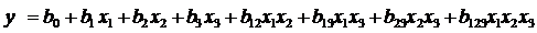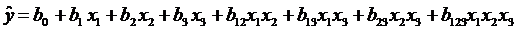 Y=15779,44+11345,56x1+1050,063x2+2347,313x3+824,9375x1x2+1777,688x1x3-4474,31x2x3-3150,69x1x2x3 (11)