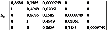 Затем определитель заполняют по столбцам: выше диагональных коэффициентов