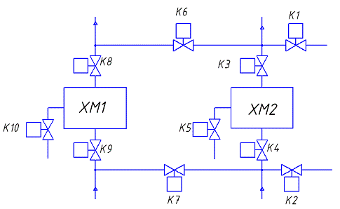 нужные для данной технологической схемы клапаны, а команда на открытие или