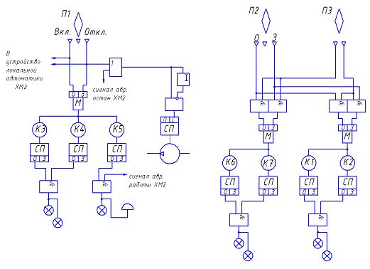 закрытие посылается переключателем П2. На пульт управления - выведена
