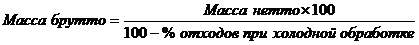 отходы и потери при холодной обработке составляют 25% к массе сырья брутто.