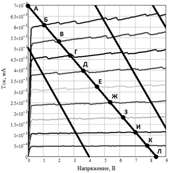 При этом новые координаты рабочей точки находятся на нагрузочной прямой.