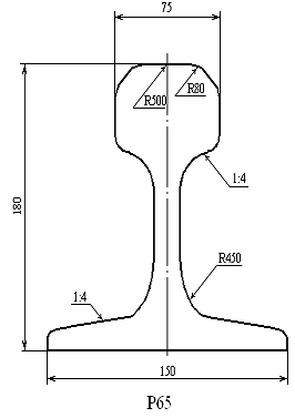 рельсы типов Р75, Р65, Р50 и Р43. Среди них в основном используются рельсы типа