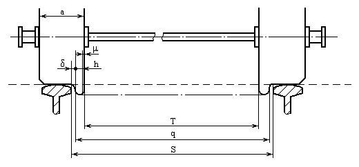 колеса на рельсе, от средней части поверхности катания, очерченной пологой