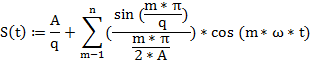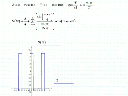 прямоугольных импульсов с амплитудой А=2, длительностью t=0.3с и периодом повторения Т=1с
