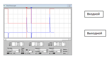 экрана осциллографа, измерив при этом период входной и выходной импульсных