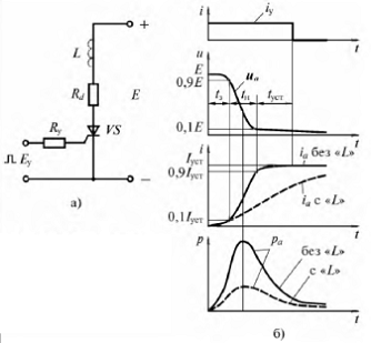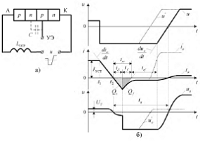анодном напряжении и непроводящем состоянии тиристора), зафиксировать ток