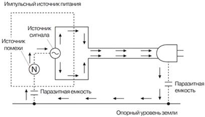 ключевых элементов. Эти помехи наводятся на кабель питания, подключенный к сети