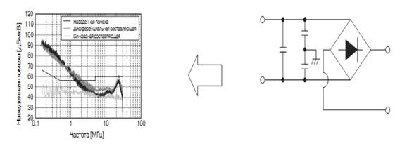 Рисунок 15 - С использованием Х-конденсатора, Y-конденсатора и синфазного дросселя