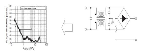 фильтра на входе импульсного источника питания. Как видно из графика, уровень