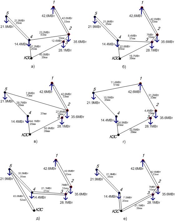 ) выбор наиболее рациональных вариантов схем электрической сети и