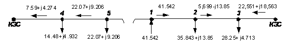 .5 Определение мощностей протекающих по линиям по схеме 5