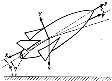 Рис. 1.1 Параметры продольного движения летательного аппарата- скорость