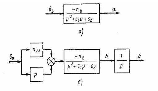 структурные схемы, эквивалентные выражениям (1.20), самолет по отношению к углу
