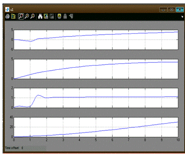 показывает изменение угла тангажа(на схеме u). На втором графике изменение