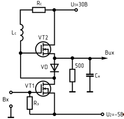 поширеність потужних МДП - транзисторів з каналом р-типу (VT2) ця схема