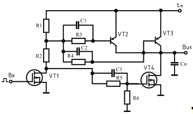 VT1 і вихідної ємності. Постійна часу заряду ємності в колі стоку VT1