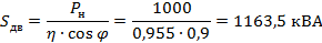 - Sдв = 7000 - 1163,5 = 5836,5 кВА