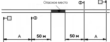 сигнальных знаков на расстоянии 800 - 1500 м (А) устанавливаются переносные