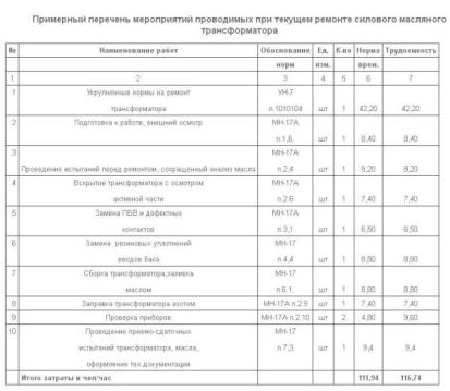 текущего ремонта силового масляного трансформатора приведен ниже: