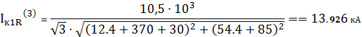 Сопротивления приведены к стороне 10 кВ. Номинальный ток отключения